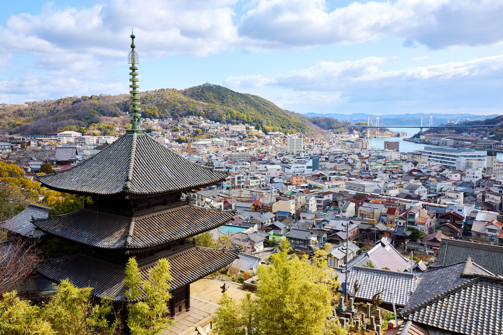 Located on Ikuchi Island, Kousanji Temple is a vibrant and stunning temple said to have been built in honor of the owner's deceased mother. This temple features a unique architectural style. Additionally, there is the "Hill of Hope" a marble garden that creates a mystical and pure white space, perfect for picturesque photos.